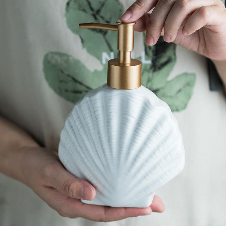 Bring some beachy vibes to your bath collection with this Mera Oceania Dispenser. Place it as a stunning solo accent piece near your sink, or complement it with coordinating bath accessories for cohesive charm. Rounded off with a luxurious metal pump in a shiny gold finish, this ceramic dispenser brings a touch of cool glamor and effortless flair to your coastal bathroom.