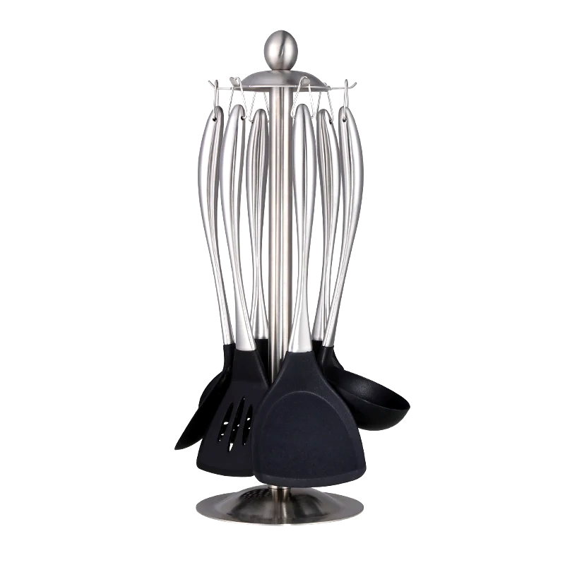 Ready to flip, stir, and scoop. Premium titanium-plated stainless steel, non-stick silicon surfaces, and ergonomic handles define this sleek six-piece utensil set.