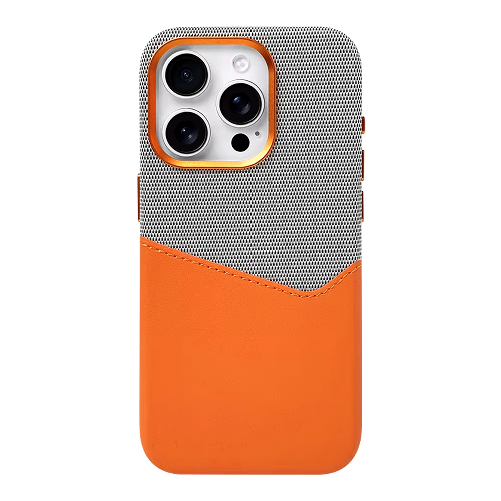 Fabric-textured upper delivers a refined touch, while the premium leather-like card pocket keeps essentials within reach. This iPhone case ages beautifully.