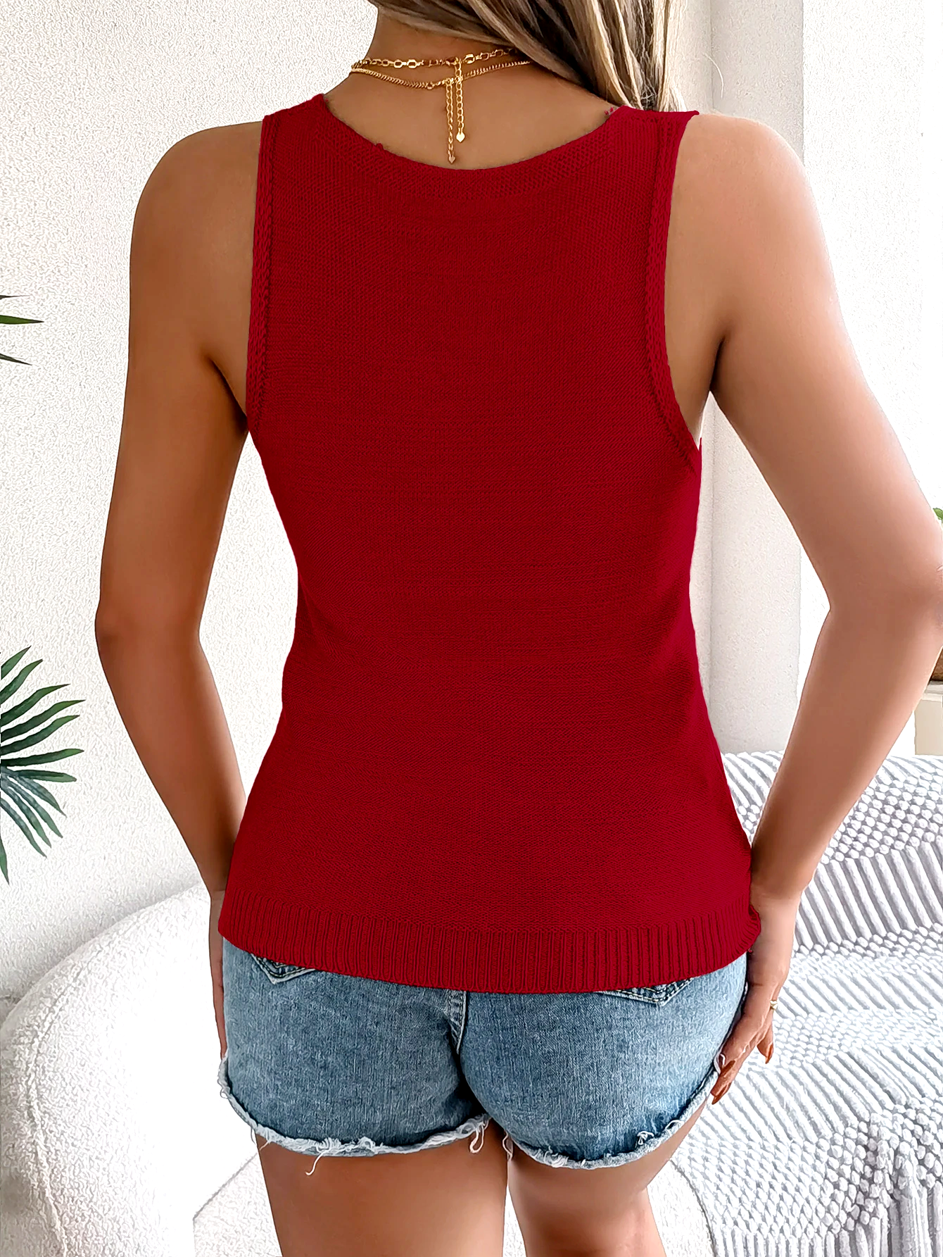 When it’s too hot for sleeves but you still want some style, this knit top delivers. Subtle cutouts keep it breathable, with a soft knit and a laid-back vibe that works from brunch to the beach.