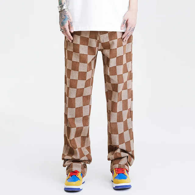 Distinguished by their vibrant checkered pattern design, these jeans stand out from the crowd. Long-lasting denim material with a relaxed fit for easy movement.