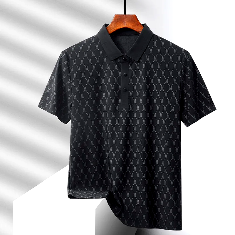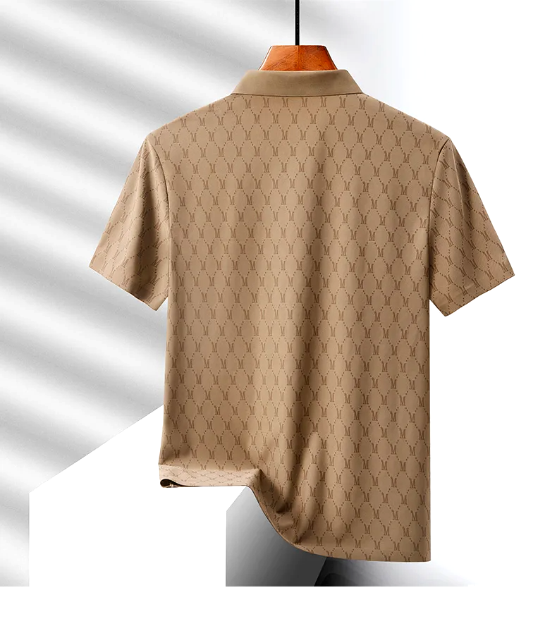 A polished essential with a fresh twist, this monogram-textured polo is crafted for comfort and timeless appeal. Its sharp collar and neutral tone make it a perfect match for chinos or crisp shorts.