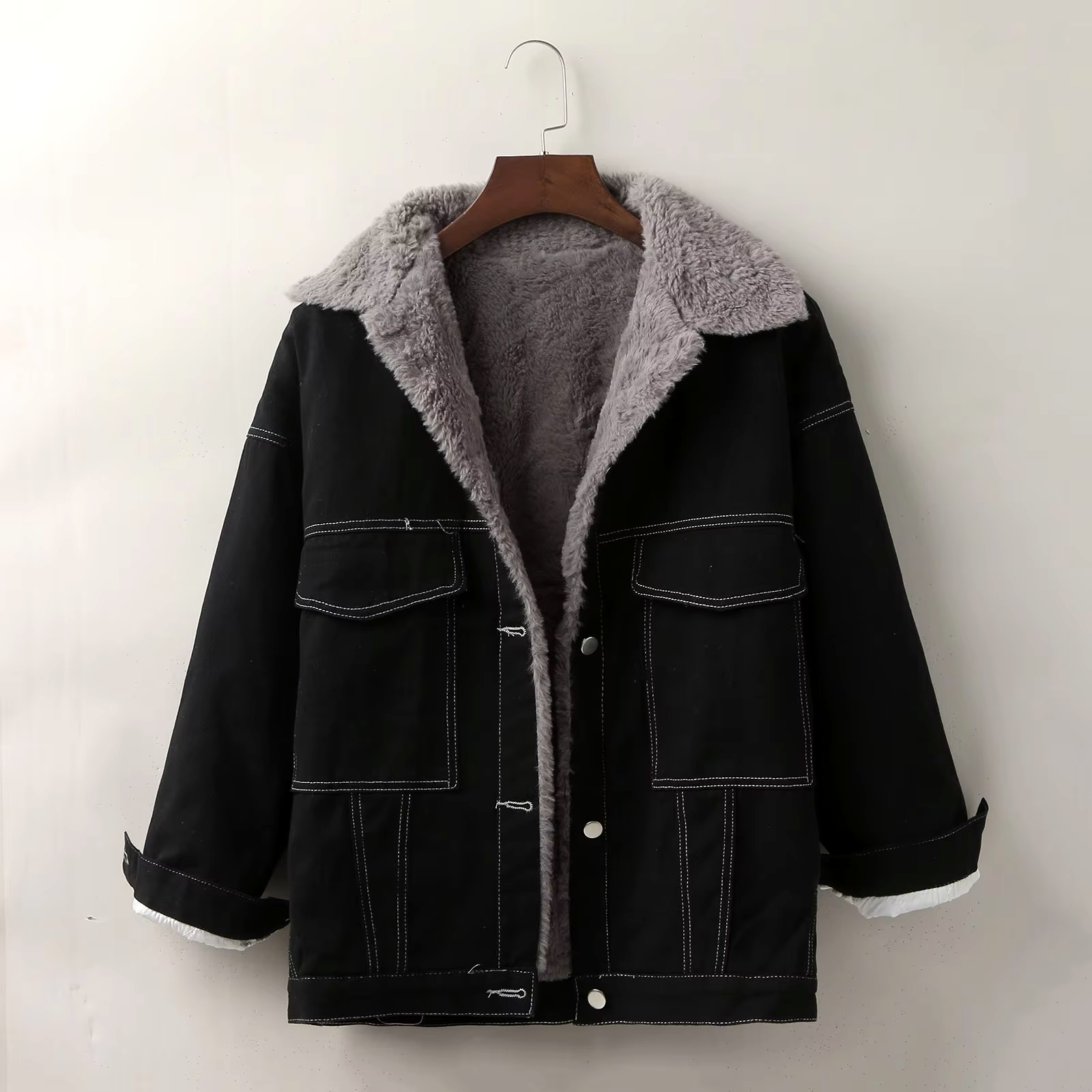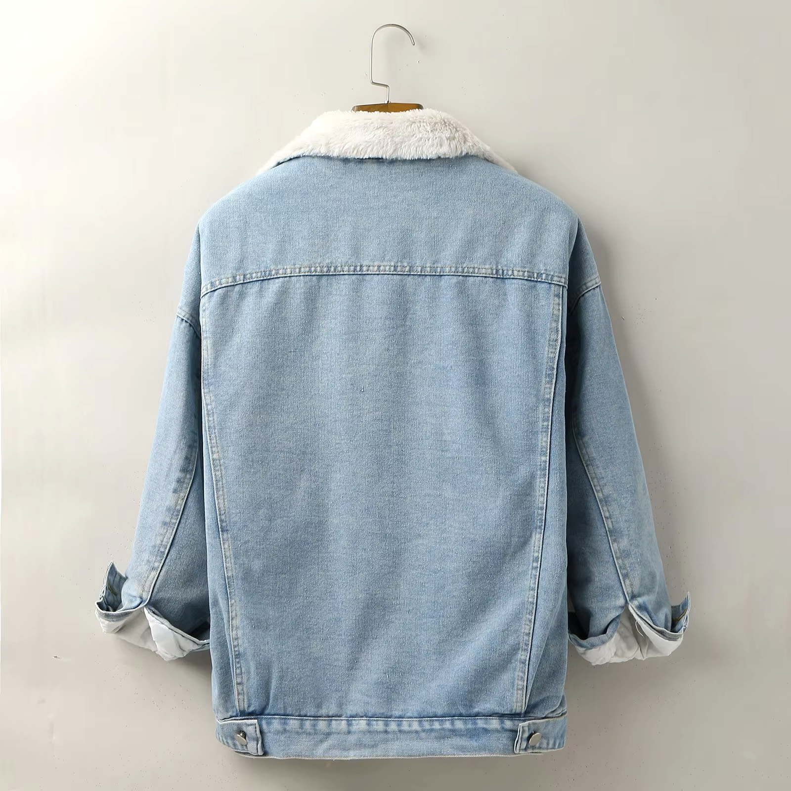 90's inspired trucker style that never fades, plush sherpa lining for warmth, and a rugged denim exterior, this classic timeless trucker jacket is made for layering and your go-to for effortless street style on chilly days.